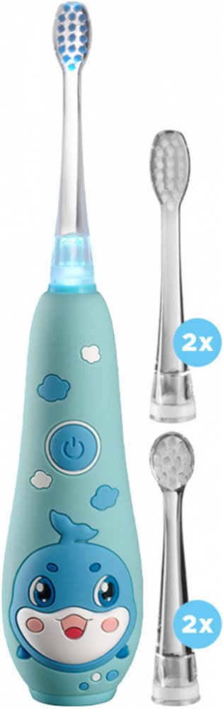 Sonický dětský zubní kartáček je ideální pro děti ve věku 1–5 let. Díky jemné technologii je šetrný k citlivým dětským dásním a zajišťuje pohodlné čištění. Má ergonomický tvar, měkké štětinky a hravý modrý design, který zpříjemní každodenní čištění zoubků. Barevné LED osvětlení hlavice navíc dodává čištění zábavný prvek a motivuje děti k pravidelné péči o jejich úsměv. Naopak bílé podsvícení umožňuje rodičům snadno zkontrolovat správné čištění zoubků a podpořit ústní hygienu už od malička.