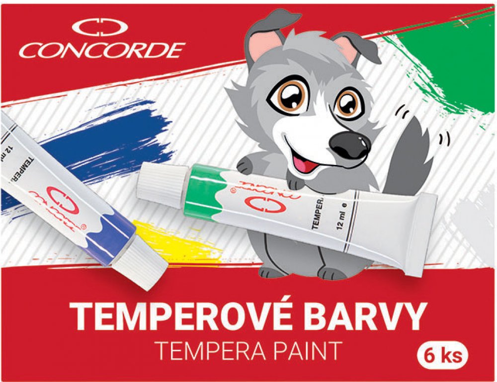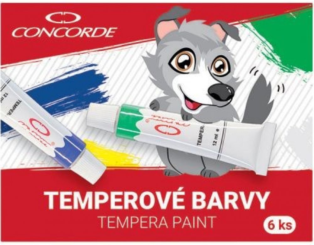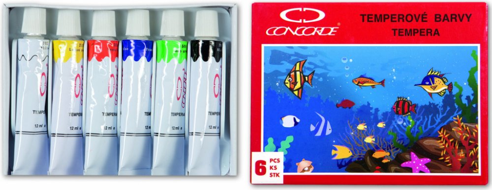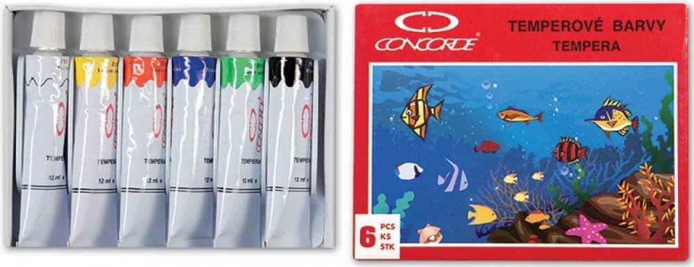 Sada 6-ti temperových barev v kovové tubě.