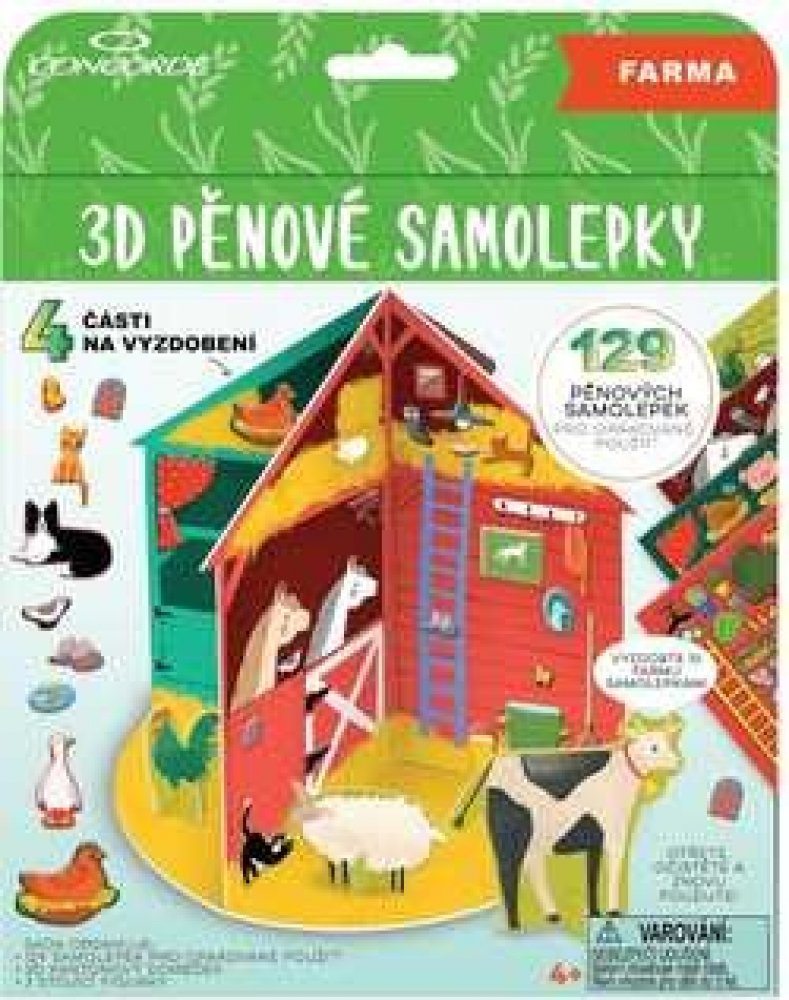 3D pěnové samolepky pro opakované použití. Set krásných samolepek a hrací 3D kartonový domeček s motivem farmy. Samolepky drží na hladké ploše bez lepidla. Lze je tedy opakovaně používat a přelepovat na hrací ploše nebo na různá hladká místa. Děti rozvíjí jemnou motoriku a zároveň si užijí plno zábavy. Skvělá aktivita pro vytváření si vlastního zábavného světa. Balení obsahuje 129 pěnových samolep...