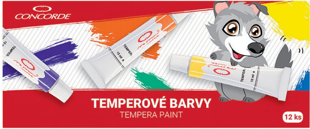Temperové barvy CONCORDE 12ml - 12ks A65329. Sada 12-ti temperových barev v kovové tubě. Barvy jsou ředitelné vodou, vzájemně se dobře mísí, po zaschnutí je lze snadno rozmýt. Jsou snadno omyvatelné a vypratelné z většiny textilií. Obsah tuby 12ml.Upozornění: "Není vhodné pro děti do 3 let. Obsahuje malé části. Nebezpečí udušení." z kategorie Heureka.cz | Kancelář a papírnictví | Papírnictví | Výtvarné a kreativní potřeby | Potřeby na malování | Umělecké barvy | Temperové barvy za skvělé ceny na Nobynet.cz.