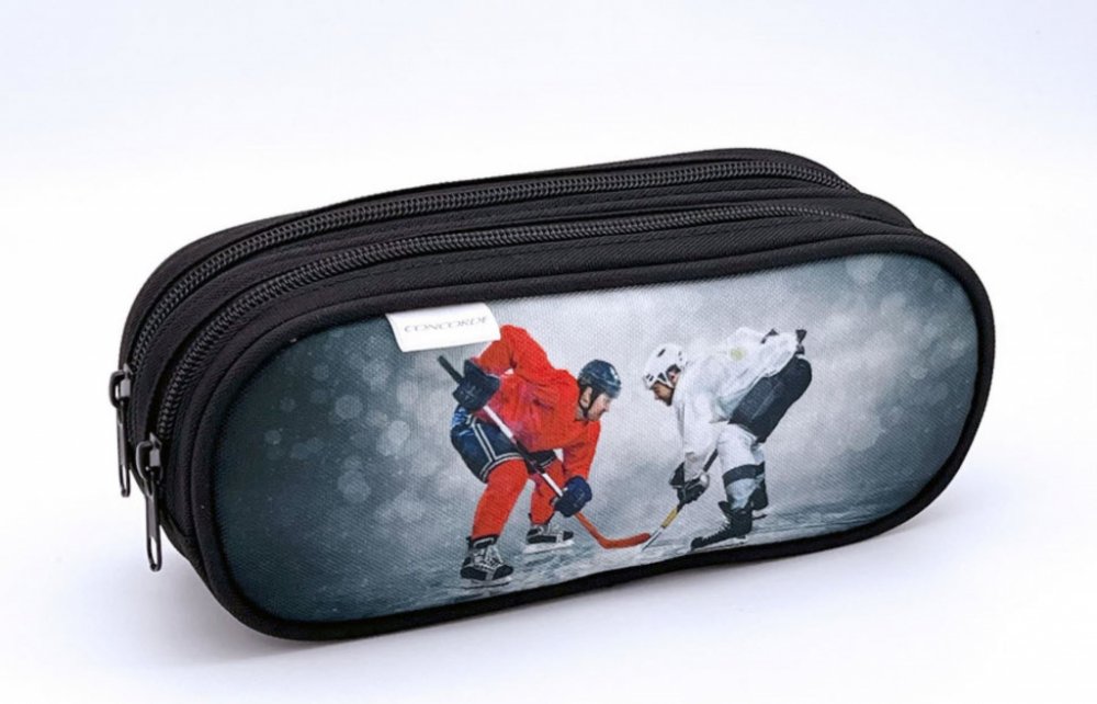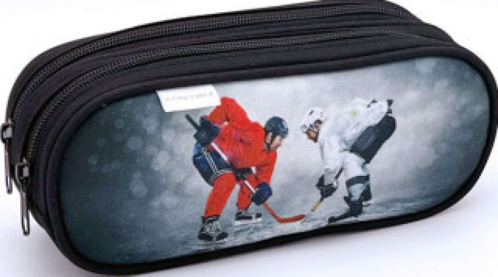 Praktická etue s motivem ledního hokeje v šedé barvě.