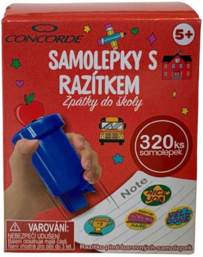 Concorde samolepky s razítkem zpátky do školy