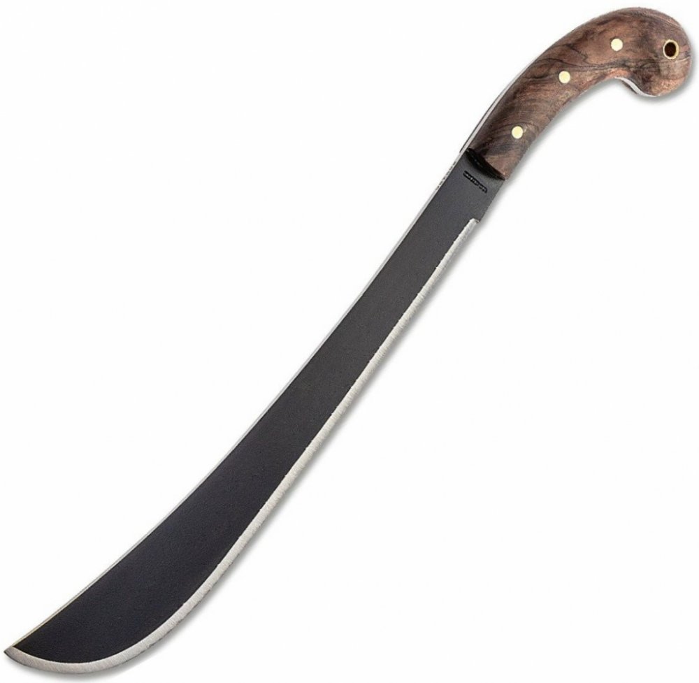 Čepel s fulltang konstrukcí je vyrobena z uhlíkové oceli 1075. Ergonomicky tvarovaná rukojeť s rozšířeným koncem je vyrobena z ořechového dřeva. Na konci rukojeti se nachází dutý mosazný nýt k provlečení šň...