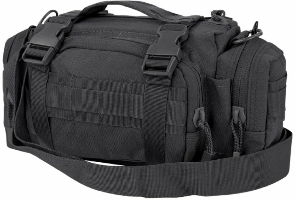 Multifunkční taška/ledvinka CONDOR® DEPLOYMENT BAG. Hlavní komora s vnitřní kapsou, tři boční kapsy se zipem. Stahovací pásky se sponou. Nastavitelný odepínatelný ramenní či opaskový popruh, ucho pro přenášení v ruce. Lze nosit jako ledvinku, tašku přes rameno, v ruce nebo pouze připnout na opasek či na batoh nebo výstroj pomocí MOLLE pásků. Materiál100% polyester, rozměry30 x 16 x 10cm.
