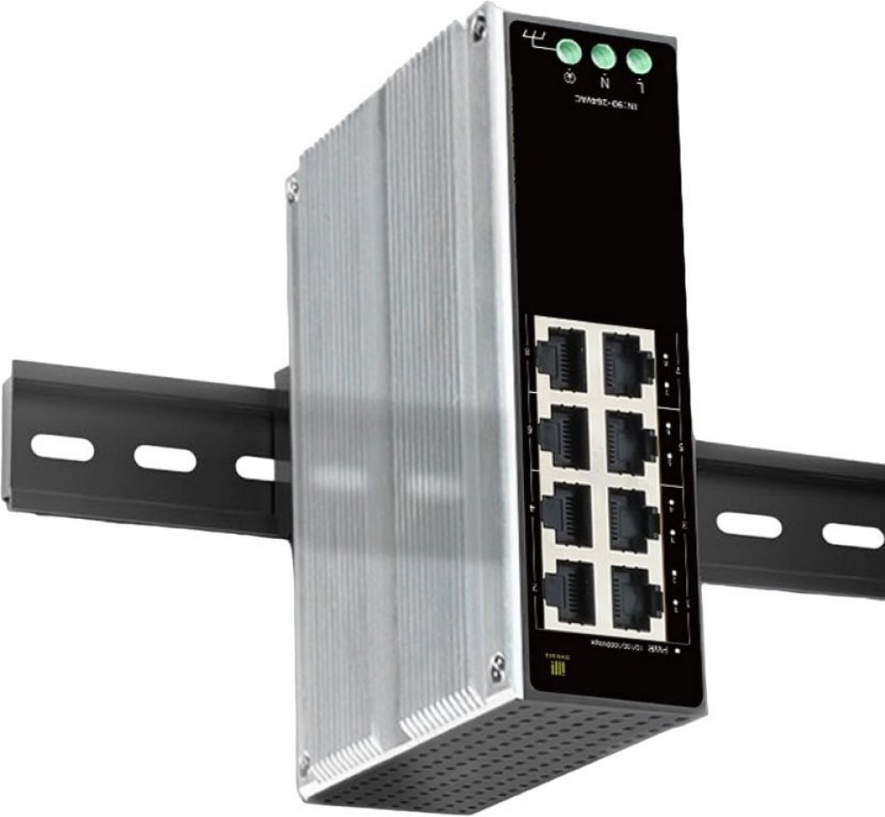 Conexpro GNT-IG1008GL-AC, Průmyslový switch na DIN lištu, 8x LAN - podrobné informace: Gigabitový switch v kovovém průmyslovém provedení s instalací na DIN lištu, bez managementu s 8x Gigabit LAN porty je zařízení určeno do nejtvrdších podmínek jako jsou výrobní haly, půdní prostory a venkovní rozvaděče. Switch nabízí tichý bezventilátorový chod, 8x 10/100/1000 Mbps LAN a napájení díky integrované...