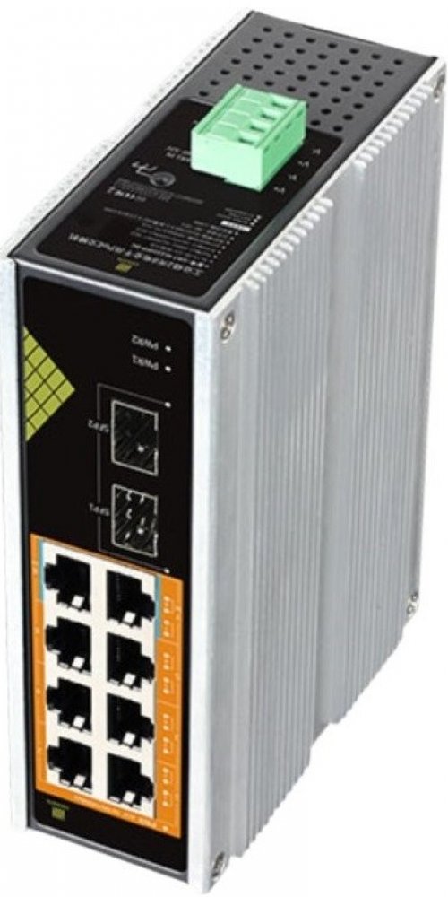 Conexpro GNT-IG1210FP-DC, Průmyslový PoE switch na DIN lištu, 8x LAN, 8x PoE, 2x SFP - podrobné informace: Gigabitový PoE switch v kovovém průmyslovém provedení s instalací na DIN lištu, bez managementu s 8x Gigabit LAN porty a dvěma optickými SFP porty je zařízení pro napájení kamer, VoIP, Wi-Fi a je určeno do nejtvrdších podmínek jako jsou výrobní haly, půdní prostory a venkovní rozvaděče. Switc...