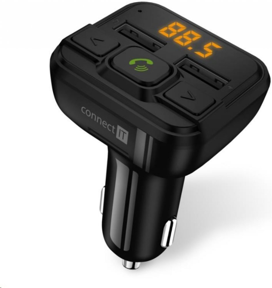 Bluetooth transmitter v kombinaci s dvouportovou nabíječkou je multifunkčí zařízení do vašeho automobilu, díky němuž můžete nejen nabíjet mobilní zařízení, ale také poslouchat hudbu ze svého USB flash disku nebo mobilního telefonu. Transmitter je vybaven digitálním displejem a třemi ovládacími tlačítky pro jednoduché a komfortní ovládání všech funkcí. Navíc je možno připojit i paměťovou Micro SD kartu. Samozřejmostí u tohoto zařízení je i možnost bezdrátového spárování s vašim mobilním telefonem pro uskutečňování telefonních hovorů. Pro tento účel nechybí ani vestavěný mikrofon.