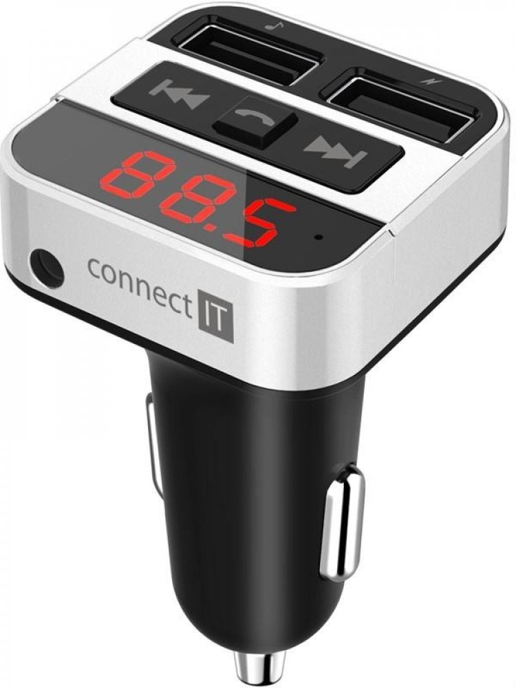 Bluetooth transmitter v kombinaci s dvouportovou nabíječkou je multifunkčí zařízení do vašeho automobilu, díky němuž můžete nejen nabíjet mobilní zařízení, ale také poslouchat hudbu ze svého USB flash disku nebo mobilního telefonu. Transmitter je vybaven digitálním displejem a třemi ovládacími tlačítky pro jednoduché a komfortní ovládání všech funkcí. Navíc je možno připojit