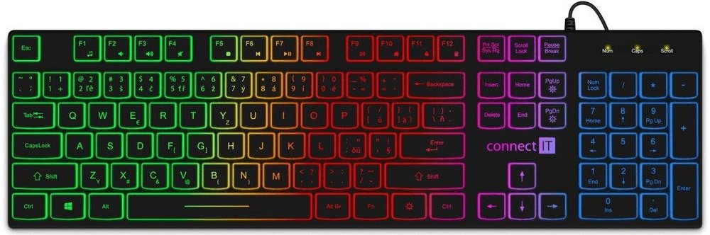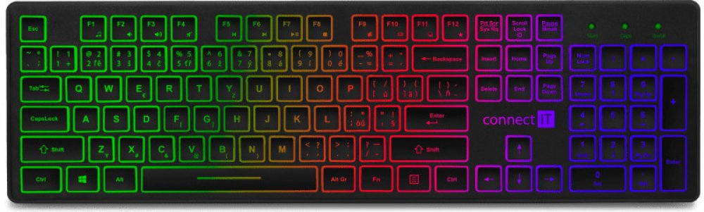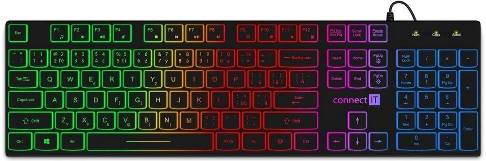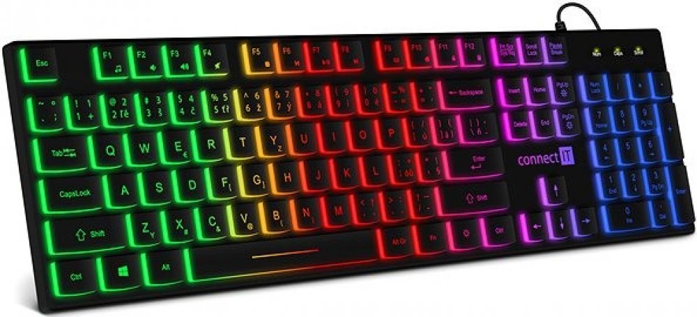 Rainbow (RNBW) barevné podsvícení kláves (zelená, žlutá, červena, fialová, modrá)