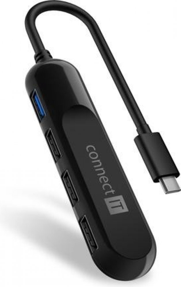 Prakticky tvarovaný USB-C hub pro připojení až 4 USB-A periferií. Umožní připojení dalších periferií jako jsou např. myš, klávesnice, MP3 přehrávač, scanner, tiskárna, digitální fotoaparát, externí pevný disk, flashdisk atd.
