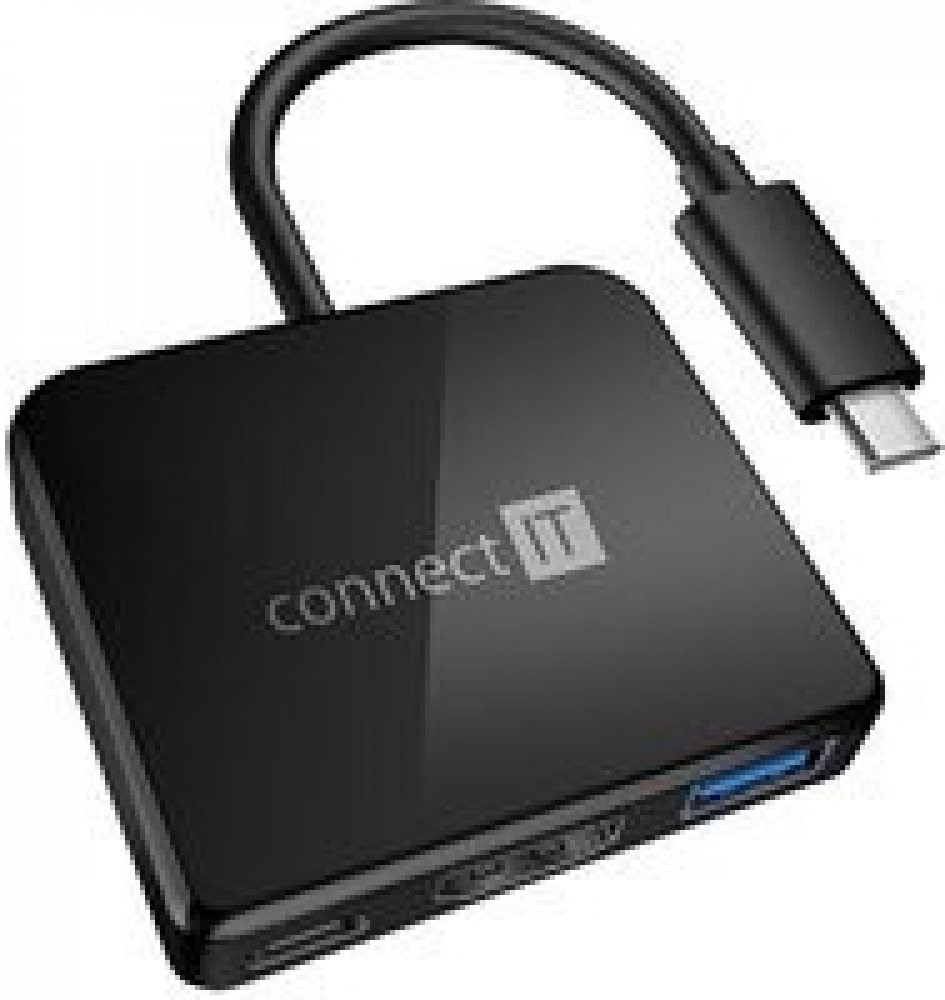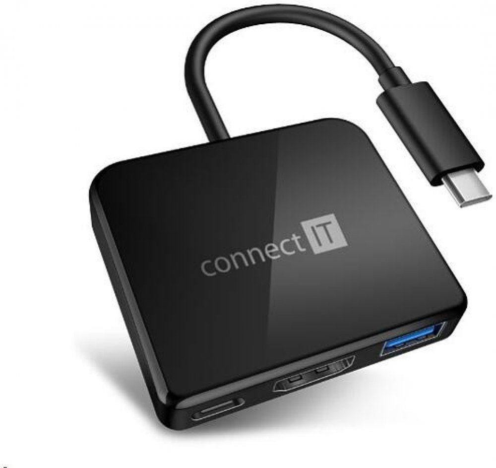 CONNECT IT USB-C hub, 3v1 (USB-C,USB-A,HDMI), externí, ČERNÝ