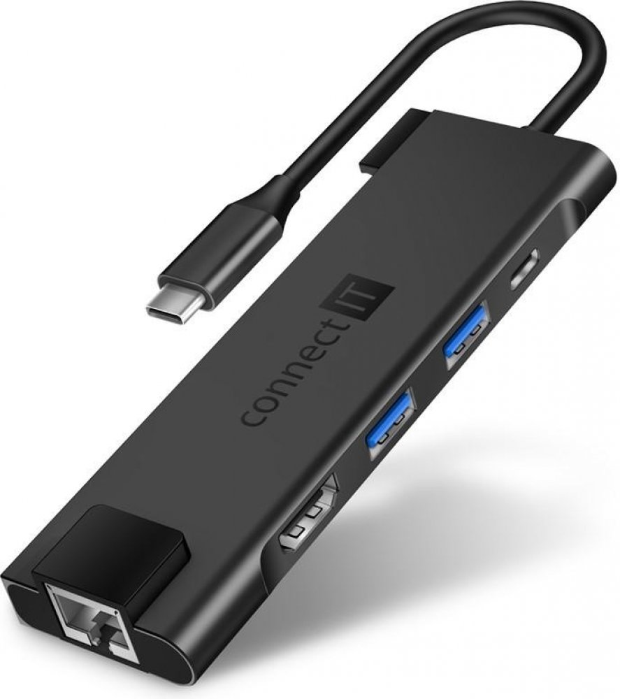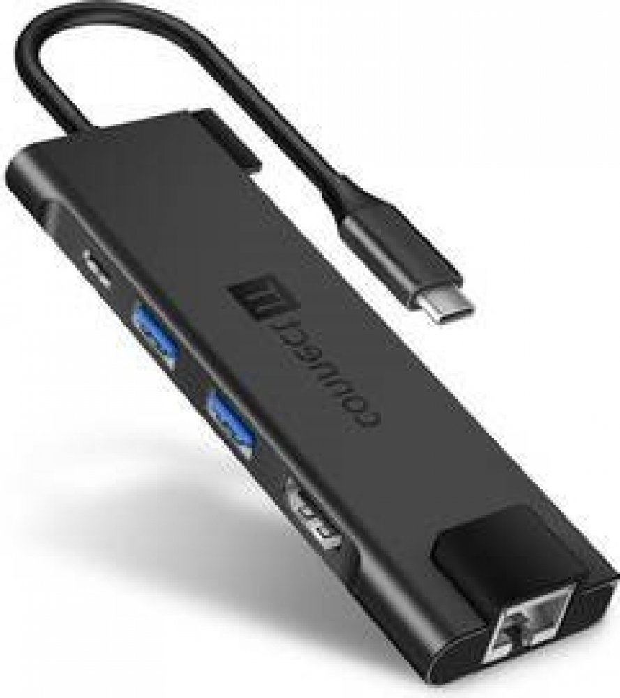 Prakticky tvarovaný USB-C hub ""Multi5in1"" pro připojení až 5 periferií (USB-C, HDMI, 2x USB-A a RJ45 Gigabit Ethernet).