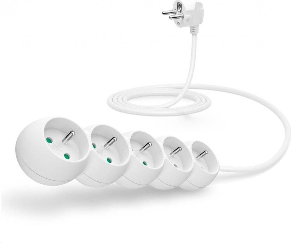Prodlužovací kabelový přívod na 230V je vybaven dětskou ochranou všech zásuvek – zásuvky jsou přístupné pouze v případě zasunutí obou vidlic najednou, nelze tedy zasunout jednotlivě např. pouze šroubovák nebo pletací jehlici.