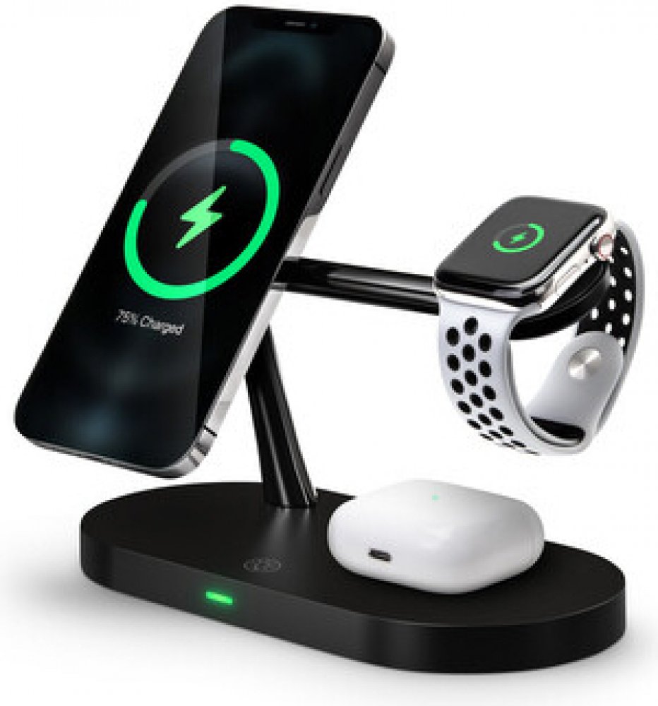 Bezdrátová magnetická nabíječka se zabudovanou lampičkou s 3 úrovněmi intenzity světla. Podporuje až 15 W rychlonabíjení a magnetickým kruhem pro nabíjení iPhone, 5 W Qi nabíjení pro Apple Watch a 3 W nabíjení pro Apple AirPods. Nabíječka disponuje i USB-