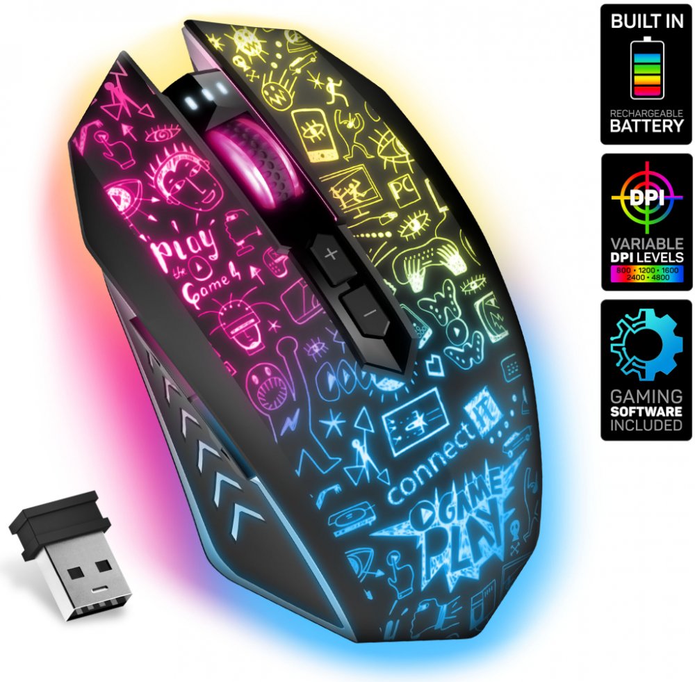 Chcete si udělat radost spolehlivou herní myší, která vás nezklame při žádné hře? Bezdrátová herní myš CONNECT IT poskytuje vše, co nadšení hráči vyhledávají. Zabezpečí vám absolutní pohodlí, rychlou odezvu a vysokou přesnost. Rozdrtíte každého soupeře díky citlivosti 4800 DPI a 7 tlačítkům. Tělo myši je přizpůsobeno potřebám praváků. Myš k PC CONNECT IT je plně kompatibilní s iOS, Windows 7, Windows 8, Windows 10 a Windows 11. Součást balení tvoří bezdrátový USB přijímač. PC myš CONNECT IT umocňuje černá a vlastní motiv barva. Její hmotnost je 110 g. Hlavní vlastnosti herní myši CONNECT IT DOODLE 2 PRO, černá Bezdrátová herní myš CONNECT IT přináší komfort, skvělou odezvu a dokonalou přesnost Základem je optický snímač s infračerveným paprskem Senzor je charakteristický citlivostí až 4800 DPI Je osazena 7 tlačítky s minimální životností 20M Programovatelná tlačítka s možností vlastní konfigurace O napájení se stará Li-Pol (dobíjecí akumulátor) baterie S počítačem ji propojíte přes USB Její hmotnost je 110 g