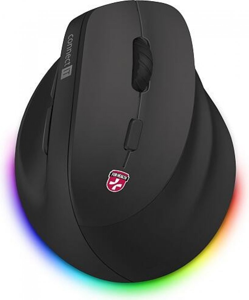 CONNECT IT FOR HEALTH Cloudy bezdrátová vertikální myš, RGB podsvícení, 2xBT,USB ČERNÁ