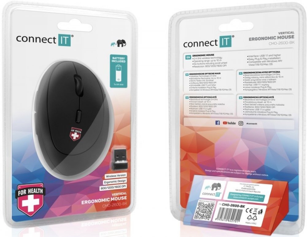 Connect IT optické 6 1600 dpi bezdrátové myši černé vhodné pro praváky 79 g