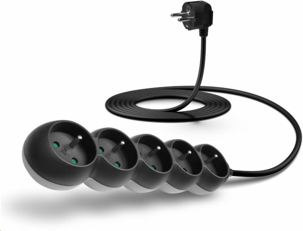 prodlužovací přívod 220/230V, 3m, 5 zásuvek, bez vypínače (černý)Prodlužovací přívod na 230 V s dětskou ochranou
