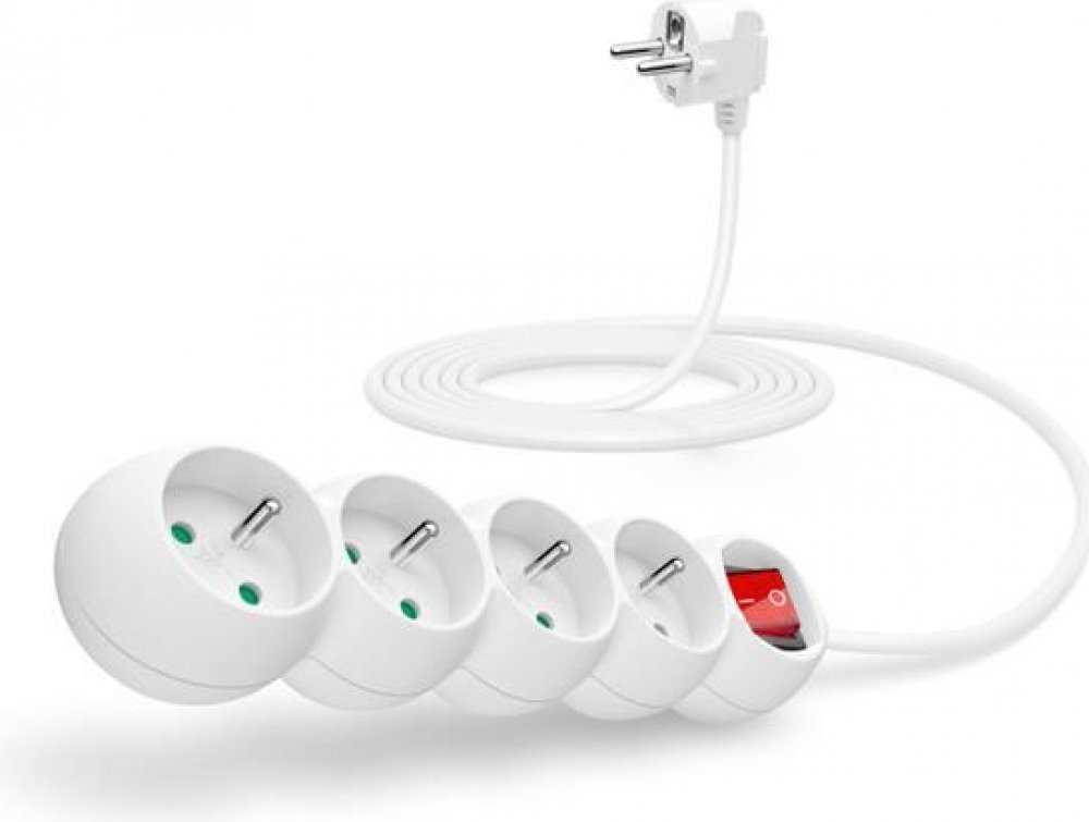 CONNECT IT prodlužovací kabel 230 V, 4 zásuvky s vypínačem, 3 m, bílý CI-1287: 4 zásuvky s dětskou ochranou, hlavní vypínač, délka 3 m, pootočené zásuvky o 45°, výsuvné očko pro zavěšení.