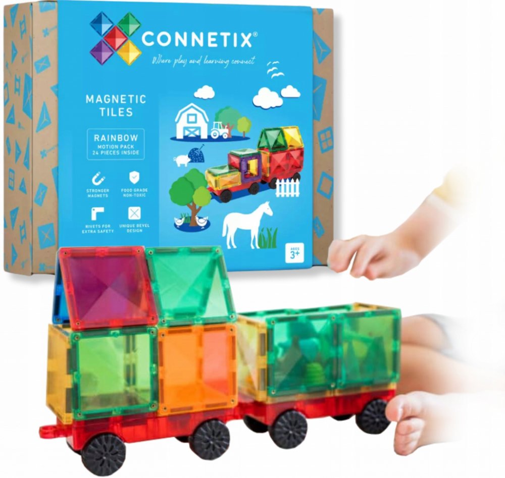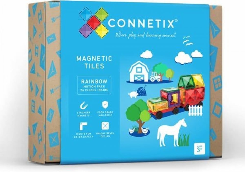 Speciální sada magnetické stavebnice Connetix, která obsahuje 2 základny pro auta s gumovými koly. K tomu nechybí ani magnetické díly různých barev a tvarů, se kterými si mohou děti vytvořit různé auta, kamiony nebo jiná vozidla. Magnetická stavebnice Connetix ve variantě Motion je skvělým dárkem pro všechny automobilové nadšence i ty, kteří nechtěji stavět pouze statické stavby, ale rádi by vytvo...