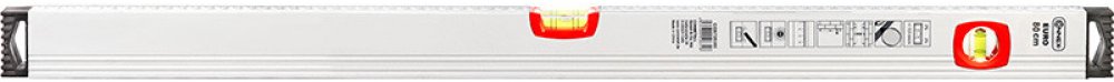 vodováha 80 cm hliníková prášková barva sklon 2% pro čtení na horizontální libele přesnost+/- 0.5 mm/m frézovaný povrch možné měření nad hlavou se stupnicí s nárazuvzdorným gumovým zakončením libely jsou odolné vůči UV záření a nárazu