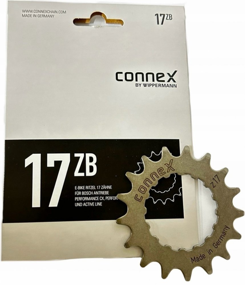 Ozubení pro elektrokolo Connex se 17 zuby je díky nejlepším výrobním a kalicím procesům extrémně odolné a proto se skvěle hodí pro vysoké zatížení v elektrokole Bosch s pohonem