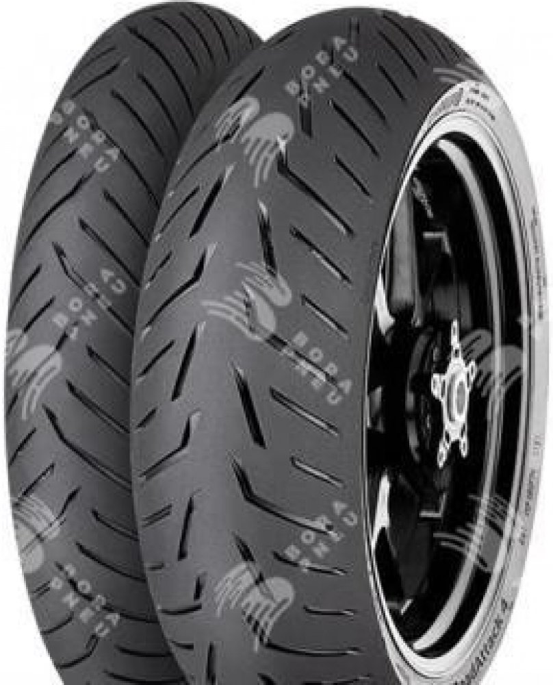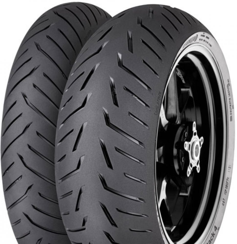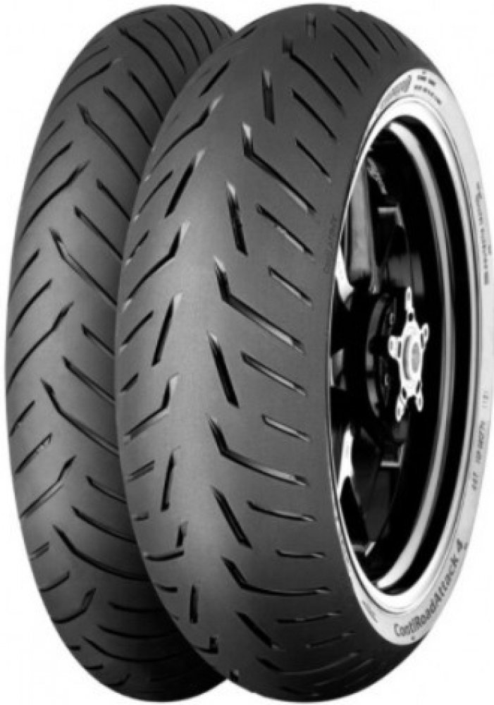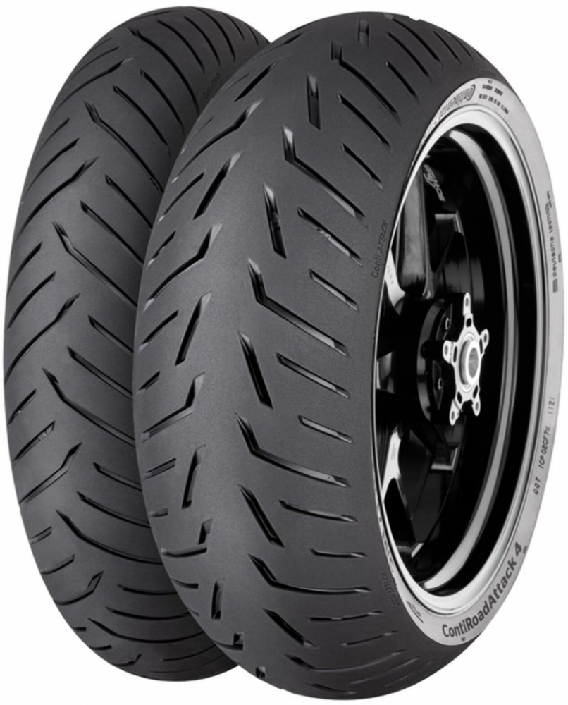 ContiRoadAttack 4 Nabízené palcové řady Testovací jezdci Continentalu najezdili spoustu kilometrů na silnici, závodní dráze a testovacím okruhu, aby mohli přijít s jejich vůbec nejlepší cestovně sportovní pneumatikou. Taková, která je z hlediska výkonu tak dobrá, že ji nazýváme Hyper-Touring Tire. Uchovali jsme všechny věci, které jste milovali z ContiRoadAttack 3: vynikající přilnavost za mokra i za sucha, agilní ovládání a skvělý kilometrový výkon. Tyto schopnosti jsme plošně zvýšili, abychom mohli expandovat na území dříve ovládané čistě speciálními sportovními pneumatikami. Výsledkem je ContiRoadAttack 4. Zcela nový design pneumatiky, která snadno překonává své konkurenty v tradičně sportovně-cestovních vlastnostech: kilometrový výkon, pohodlí, stabilita a přilnavost za mokra. Ale která také nabízí nové úrovně čistě sportovních schopností, zásadní pro nejnovější vysoce výkonné sportovně-cestovní motocykly s úrovní výkonu, který se nyní blíží 200 koním a specifikacemi pro technologii podvozku superbike. Moderní stroje jsou na hony vzdáleny od motocyklu vašeho táty, ale ContiRoadAttack 4 je navržen i pro tyto stroje. A na starších motorkách je ContiRoadAttack 4 fantastický a může vylepšit chování podvozku a zvýšit výkon. Snadné a intuitivní ovládání, které doplňuje nejnovější stroje a zároveň zvyšuje výkon starších motocyklů. Zcela nová směs a inovovaný dezén běhounu výrazně zvyšují výkonnost za mokra s vynikající přilnavostí za všech podmínek a ještě lepší přilnavostí za sucha, která se vyrovná čistě sportovním pneumatikám. Nová "hladká" oblast na horním rameni běhounu pro prvotřídní přilnavost v zatáčkách při vysokých úhlech náklonu. Přepracovaná konstrukce přední pneumatiky přináší větší zpětnou vazbu a lepší agilitu s menší tendencí "postavit se" při prudkém průjezdu zatáčkou. Technologie TractionSkin znamená, že pneumatiky jsou připraveny k okamžitému použití, takže vás při jízdě z pneuservisu nečeká žádné nepříjemné překvapení. Směs Nová směs Silica pro ještě lepší přilnavost za mokra v chladných a kluzkých podmínkách s ne negativním vlivem na ujeté kilometry - Směs byla dále optimalizována pro použití se systémy ABS Nová směs pryskyřic dělá pneumatiku ještě lepkavější -Směs je pružnější pro větší přilnavost i v chladných podmínkách Směs plná siliky na přední pneumatice pro lepší přilnavost na mokru v chladných a kluzkých podmínkách Nová směs polymeru a pryskyřice pro vyvážené opotřebení Použité technologie MultiGrip - Umožňuje dosažení homogenní přilnavosti při použití jediné směsi díky řízení teploty vytvrzování pneumatiky v průběhu výrobního procesu. - Oblast ramen pneumatiky je flexibilní = vyšší přilnavost - Centrální oblast běhounu je odolná proti opotřebení = delší životnost - Plynulý přechod mezi oblastmi TractionSkin - Revoluční mikro-hrubý povrch dezénu TractionSkin prakticky znamená konec zajíždění nových pneumatik. To je možné díky nové technologii povrchové úpravy, která eliminuje potřebu použití separačních prostředků při vulkanizaci. ZeroDegree - 0° konstrukce ocelového pásu zaručuje vynikající stabilitu při vysokých rychlostech. RainGrip - Optimalizovaná směs pro vynikající přilnavost na mokrém povrchu díky speciální směsi s aktivní sloučeninou siliky. Ta umožňuje nejlepší přilnavost i na mikroskopické úrovni vozovky. EasyHandling - Technologie EasyHandling umožňuje lineární handling, i když jsou stabilizační gyroskopické síly nominální (např. při zatáčení). Současně došlo ke zlepšení přesnosti a pocitu při manévrování v náklonu na úroveň, která slouží jako referenční při srovnávání s ostatními produkty – to platí pro všechny jízdní situace v tomto segmentu. GripLimitFeedback - Inovativní technologie “GripLimitFeedback” zvyšuje úroveň bezpečnosti při extrémních náklonech. Jezdec díky ní dostává zpětnou vazbu od pneumatik již v prvotní fázi kritické situace, díky čemuž má vyšší míru kontroly při jízdě na samé hranici možností. Handmade in Germany - Již po generace se téměř všechny naše radiální pneumatiky vyráběly s velkou vášní, dovedností a odborností v Korbachu v Německu na krásném jezeře Eder.