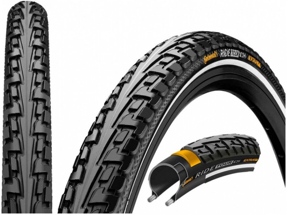 Plášť CONTINENTAL Ride Tour Reflex drát - 700x42c. Plášť Continental Tour Ride nabízí univerzální profil pro všechny povrchy, silnou ochranu proti proražení Puncture ProTection a dlouhou životnost. Verze s reflexními pruhy na bocích pláště. 700x42c. 42-622.