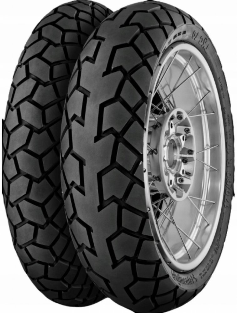 Continental TKC 70 Twinduro - Nová pneumatika TKC 70 v sobě spojuje to nejlepší z TKC 80 offroad pneumatiky a silniční pneumatiky ContiTrailAttack 2. Zcela nová pneumatika Continental s vyváženým silničním výkonem a robustními možnostmi v terénu. Nově vyvinutá radiální pneumatika s diagonální konstrukcí navržená pro off-road v rychlosti až do 240 km/h – všechny radiální pneumatiky jsou ručně vyráběny v Německu. TKC 70 je vhodná pro lehký až středně těžký terén a poskytuje mimořádný výkon při použití na silnici. Jedinečná struktura vzorku dělá pneumatiku TKC 70 tichou a stabilní na cestě, a přitom poskytuje dobré schopnosti při jízdě v terénu. Agilní na silnicích a bezpečná na štěrkových cestách. MultiGrip: Speciální technologie Continental umožňuje použití jediné směsi s různou úrovní tvrdosti na centrálním běhounu a v oblasti ramen (větší kilometrový výkon a lepší přilnavost). RainGrip: Nová směs s vynikající přilnavostí za mokrého počasí a s velmi krátkým časem nahřívání. 0° konstrukce ocelového pásu zaručuje vysokou stabilitu a menší zpětný ráz. Od svého založení v roce 1871, Continental pracuje na jednom cíli: Zajišťovat bezpečnost na silnicích bez kompromisů, s komfortem a potěšením. Od první pneumatiky na světe se vzorkem běhounu až po vizionářskou Conti.eContact a inovace v automotivní bezpečnosti – více než 140 let, neustále rozvíjíme naše zkušenosti v mobilitě, dopravě a procesech. Zatímco vy čtete tento článek , více než 200.000 vysoce kvalifikovaných zaměstnanců v 53 zemích pracuje pro tyto cíle. Před uvedením každé inovace do produkce ji intenzivně testujeme. Stanovování zcela nových testovacích metod garantuje každodenní použitelnost. Continental vyvíjí a používá stále více a více pokrokových testovacích a měřících technologií tak, aby mohl dodávat vyspělé a optimalizované produkty. Testujeme pro Vaši bezpečnost – všude na světě. Celoročně a neustále prokazujeme, že neexistují limity našeho testování na polygonech v USA, Novém Zélandu, ve Švédsku, Španělsku a v neposlední řadě také na domácím okruhu Contidrom blízko Hannoveru – který je mimochodem často vyhledávaným referenčním okruhem pro nezávislé experty. Každý náš typ letní i zimní pneumatiky, celosvětově, je tedy testován za všech povětrnostních podmínek a na všech površích. Nelze nezmínit, že během tohoto testování používáme ty nejmodernější metody a postupy. 140,000 pneumatik ujede v našich testech každý rok min. 200 miliónů kilometrů. Mezinárodní tým profesionálních expertů vykoná přes 67,000 testů – a objedou celý svět více než 500 krát, dříve než je inovace schválena. Tak Continental zajišťuje, že přináší pouze ty nejbezpečnější, nejpohodlnější a nejspolehlivější řešení mobility. Výrobce pneumatik všech kategorií: osobní a užitková letní, zimní, celoroční. Nákladní, zemědělská, průmyslová, motocyklová, MPT a EM bagry.