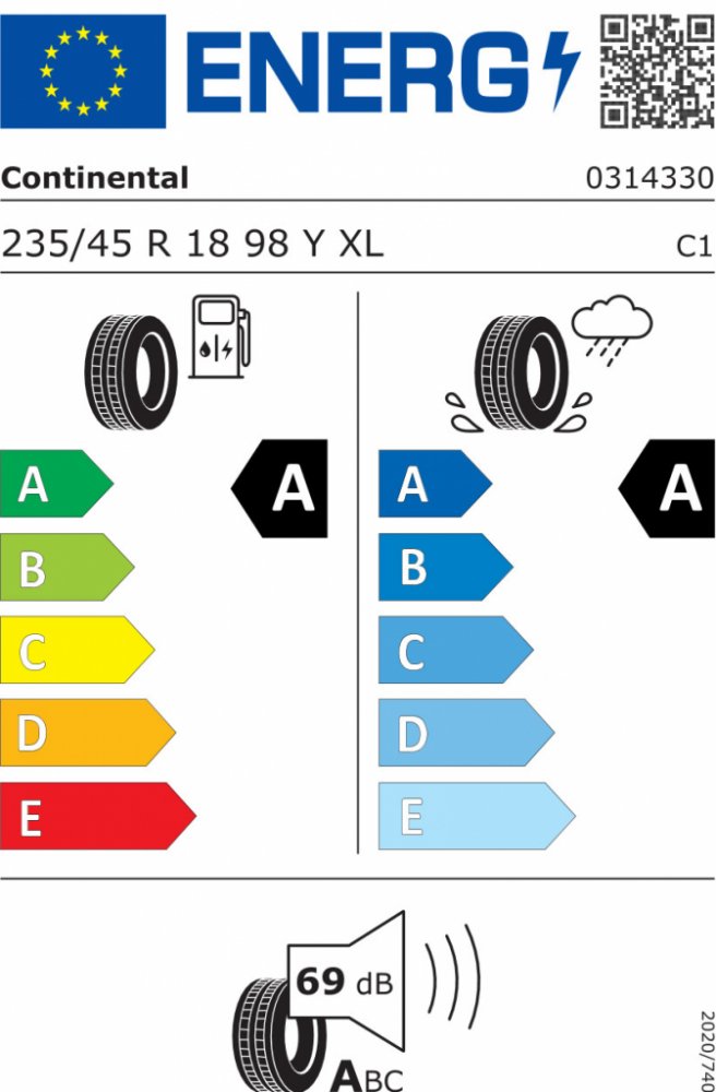 Y (=300 km/h) 235 R18 45 98 letní Continental 69 dB A A A 1465176 Porsche