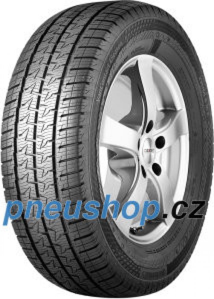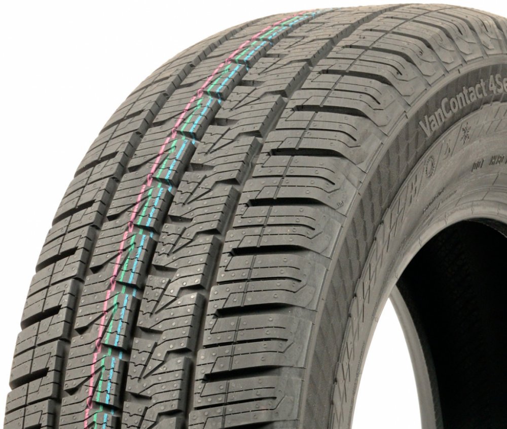 CONTINENTAL VanContact 4Season Hospodárnost po celý rok PODPOŘENÁ NĚMECKOU TECHNOLOGIÍ. Záruka vysoké bezpečnosti 365 dní v roce. Celoroční pneumatiky pro dodávky a transportéry. Díky německé technologii a komplexní automotivní kompetenci nabízí prémiové pneumatiky Continental kontrolu nad každou jízdní situaci Hospodárný provoz vašeho automobilu po celý rok díky nižší spotřebě paliva Těší se důvěře předních výrobců automobilů – lze je najít například u modelů Mercedes-Benz Sprinter a VW Crafter Hospodárný provoz vašeho automobilu po celý rok díky nižší spotřebě paliva. Inovativní běhounová směs s novou generací siliky účinně snižuje spotřebu paliva zásluhou nízkého valivého odporu, takže tato pneumatika představuje výhodnou investici do budoucna. Vysoký brzdný výkon na mokré, blátivé a zasněžené vozovce. Velký počet lamel maximalizuje délku hrany, což zajišťuje lepší kontakt s mokrou vozovkou a zvyšuje brzdný výkon na mokru. Odvodňovací drážky ve tvaru písmene V a široké boční drážky navíc úspěšně předcházejí aquaplaningu.Zejména v zimních podmínkách přináší prodloužená délka hrany lamely vynikající brzdný výkon. V kombinaci s malými výstupky uvnitř drážek v ramenní oblasti nabízí pneumatika VanContact™ 4Season vynikající záběrové vlastnosti a přesné řízení na vozovkách pokrytých sněhem. Vynikající řízení a brzdění na suché vozovce. VanContact™ 4Season vyznačující se lepším výkonem zaručuje krátkou brzdnou dráhu, přesné řízení a vysokou stabilitu na suché vozovce.