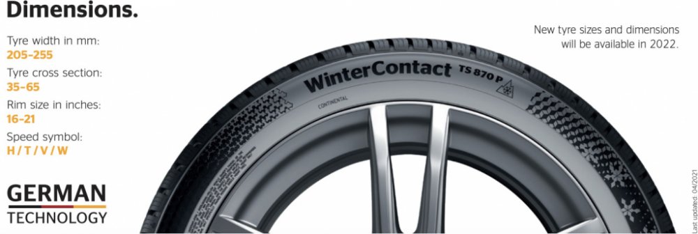 Continental ContiWinterContact TS 870 P je zimní pneumatika nové generace, která spojuje špičkovou přilnavost, bezpečnost a hospodárnost v každém detailu. Díky chytrému dezénu s vylepšenou konfigurací lamel nabízí mimořádně přesné řízení a vynikající záběr na sněhu i ledu. Dlouhé lamelové hrany efektivně odvádějí vodu a rozbředlý sníh, čímž zkracují brzdnou dráhu a zvyšují kontrolu nad vozidlem i na zledovatělém povrchu. Inovativní směs CoolChili™, která využívá udržitelné přísady, poskytuje spolehlivý brzdný výkon na mokré vozovce a skvělou ochranu proti aquaplaningu. Zároveň přispívá ke snížení valivého odporu, což znamená nižší spotřebu paliva. Flexibilní polymerní struktura s pevnými molekulárními vazbami snižuje míru opotřebení a zajišťuje vysoký kilometrový výkon. TS 870 P tak představuje ideální volbu pro řidiče, kteří v zimě očekávají maximální výkon, bezpečí i úspornost v jednom. Od svého založení v roce 1871, Continental pracuje na jednom cíli: Zajišťovat bezpečnost na silnicích bez kompromisů, s komfortem a potěšením. Od první pneumatiky na světe se vzorkem běhounu až po vizionářskou Conti.eContact a inovace v automotivní bezpečnosti – více než 140 let, neustále rozvíjíme naše zkušenosti v mobilitě, dopravě a procesech. Zatímco vy čtete tento článek , více než 200.000 vysoce kvalifikovaných zaměstnanců v 53 zemích pracuje pro tyto cíle. Před uvedením každé inovace do produkce ji intenzivně testujeme. Stanovování zcela nových testovacích metod garantuje každodenní použitelnost. Continental vyvíjí a používá stále více a více pokrokových testovacích a měřících technologií tak, aby mohl dodávat vyspělé a optimalizované produkty. Testujeme pro Vaši bezpečnost – všude na světě. Celoročně a neustále prokazujeme, že neexistují limity našeho testování na polygonech v USA, Novém Zélandu, ve Švédsku, Španělsku a v neposlední řadě také na domácím okruhu Contidrom blízko Hannoveru – který je mimochodem často vyhledávaným referenčním okruhem pro nezávislé experty. Každý náš typ letní i zimní pneumatiky, celosvětově, je tedy testován za všech povětrnostních podmínek a na všech površích. Nelze nezmínit, že během tohoto testování používáme ty nejmodernější metody a postupy. 140,000 pneumatik ujede v našich testech každý rok min. 200 miliónů kilometrů. Mezinárodní tým profesionálních expertů vykoná přes 67,000 testů – a objedou celý svět více než 500 krát, dříve než je inovace schválena. Tak Continental zajišťuje, že přináší pouze ty nejbezpečnější, nejpohodlnější a nejspolehlivější řešení mobility. Výrobce pneumatik všech kategorií: osobní a užitková letní, zimní, celoroční. Nákladní, zemědělská, průmyslová, motocyklová, MPT a EM bagry.