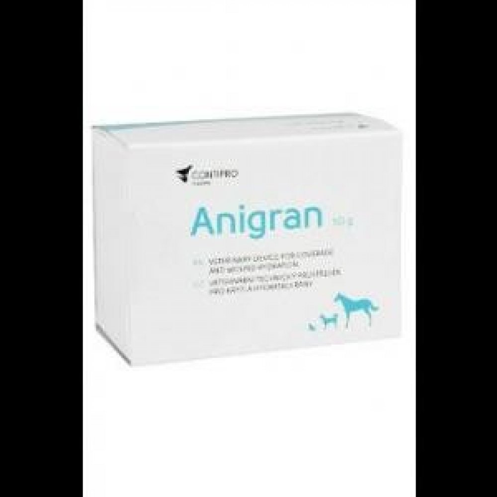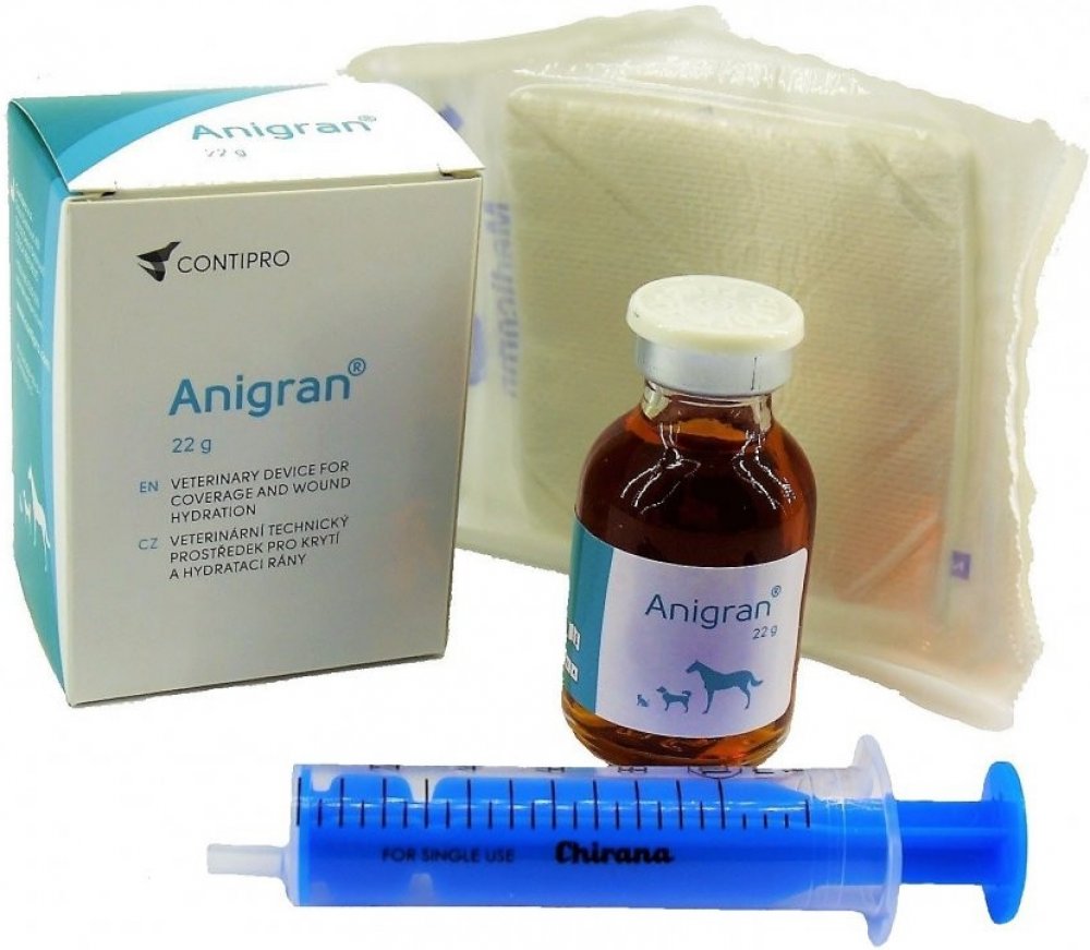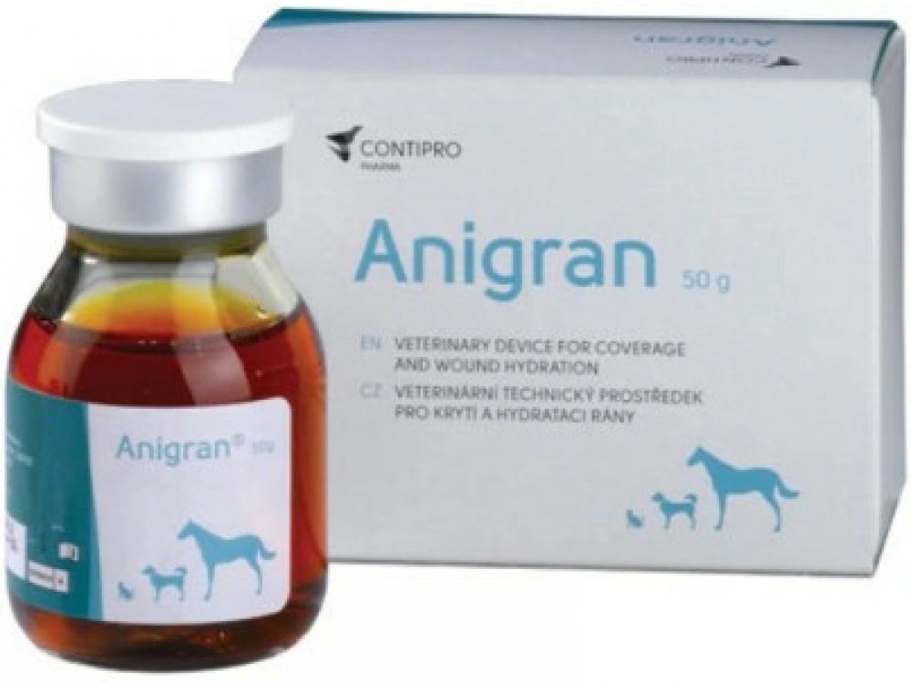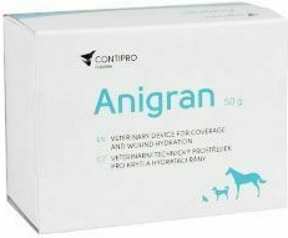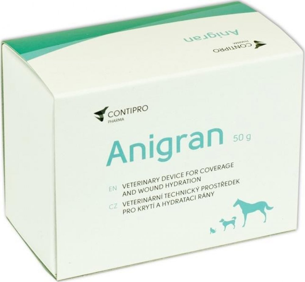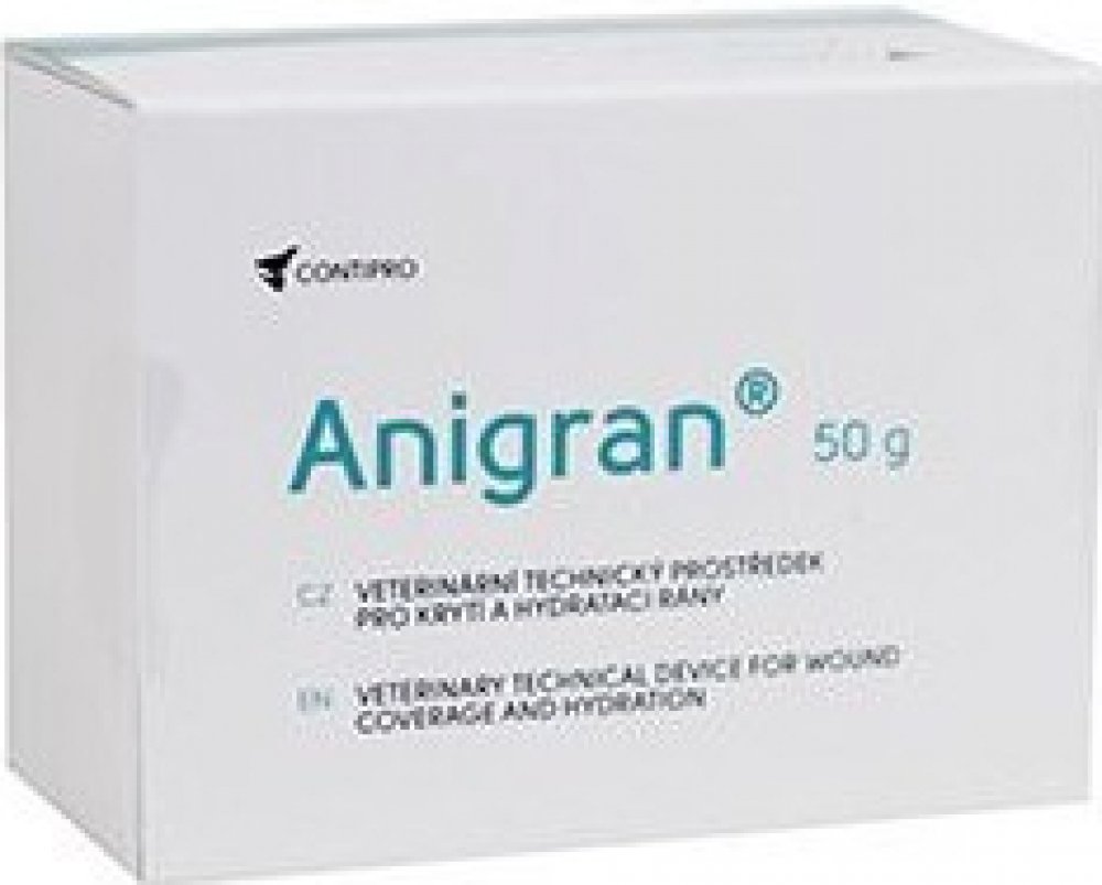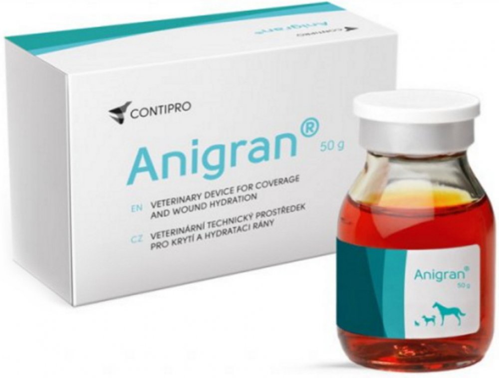 Anigran je veterinární přípravek ve formě gelu určený k ošetření špatně se hojících, chronických, infikovaných, ale i akutních ran u všech druhů zvířat, zejména u psů a koní. Vynikající vlastnosti Anigranu zajišťují dvě aktivní látky – kyselina hyaluronová a jódový komplex.