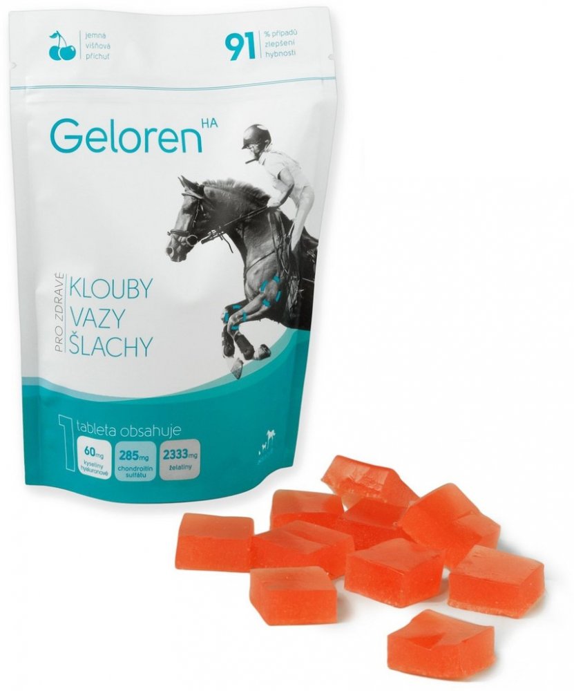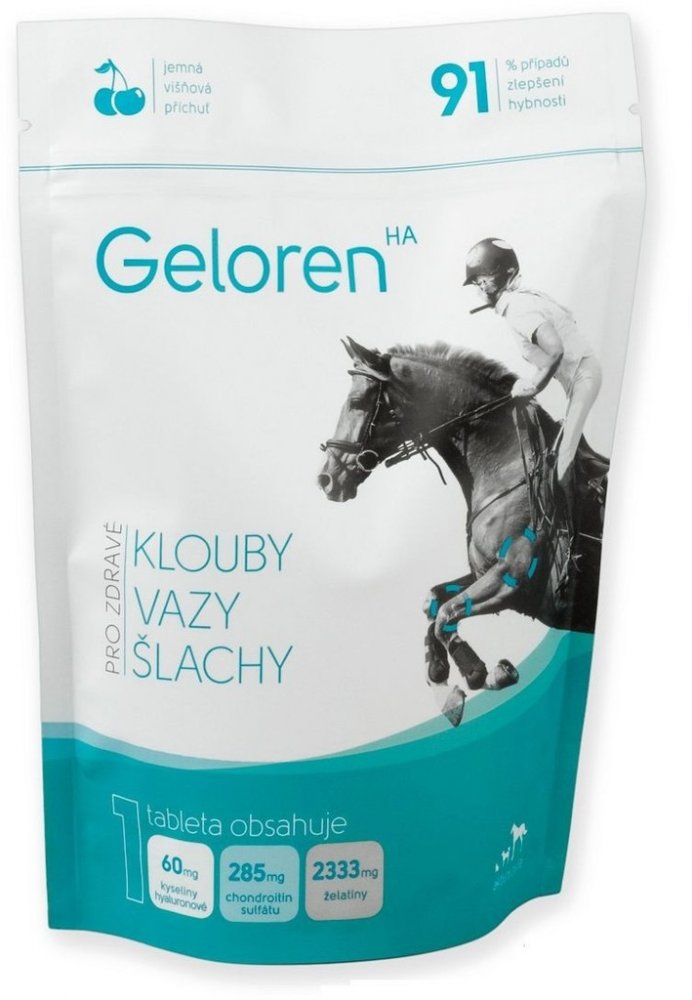 Kloubní výživa s koňskou dávkou kyseliny hyaluronové pro zdravé klouby, vazy a šlachy. Geloren HA je vhodným doplňkem výživy koní při většině typů kloubních problémů, ale také může přispívat k prodloužení aktivního života nejen u sportovních koní. Má podpůrný vliv na klouby - napomáhá při zvýšené zátěži, nadváze, ve stáří i při problémech s pohybovým aparátem.
