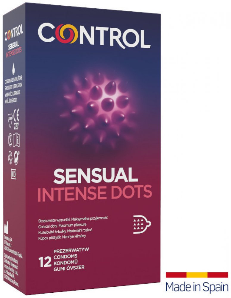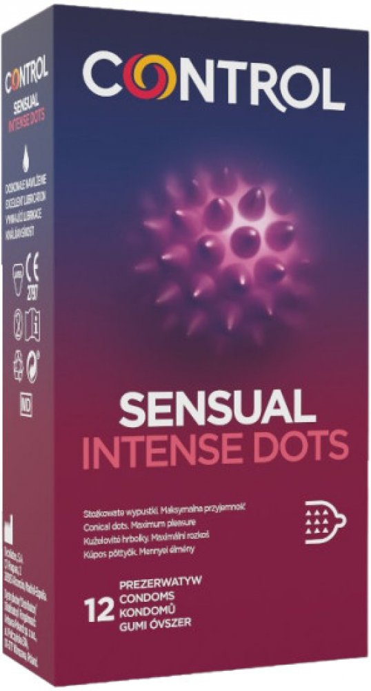 Kondomy Control Sensual Intense Dots12sKondomyControlSENSUAL INTENSE DOTS s dodatečnou stimulací v podobě kónických teček - 12 ks. Kondomy z přírodního latexu s kónickými tečkami rozmístěnými po celém povrchu proještě větší potěšenípro ještě větší potěšení Kondomy Control Sensual Intense Dots znásobují pocity díky kónickým výstupkům strategicky rozmístěným po celém povrchu Jsou vyrobeny z přírodní...