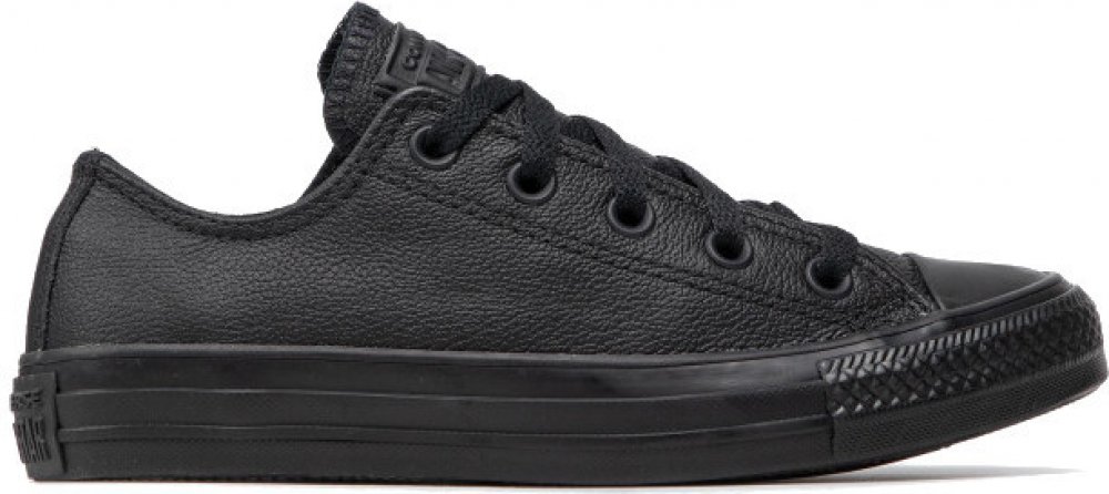 Unisexové boty CHUCK TAYLOR ALL STAR C135253 z kolekce od značky Converse, jsou vhodné na volnočasové nošení. Jsou celé v černé barvě, včetně podrážky a tkaniček. Textilní svršek je nahrazen přírodní kůží. Nízký střih Vám zajistí maximální flexibilitu v kotníku.