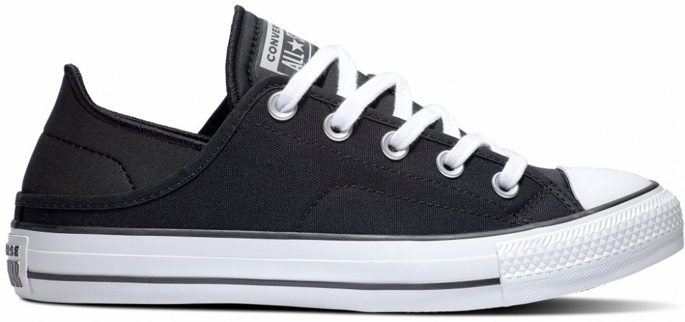 Stylové kecky Chuck Taylor All Star Crush Heel z kolekce značky Converse, jsou v černé barvě.. Na jazyku mají našitý štítek s nápisem Converse All Star. Boty mají gumovou špičku bílé barvy. Jsou velmi stylové a originální. Vhodné pro volnočasové