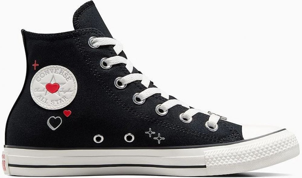 Tyhle klasické tenisky Chuck zdobí srdíčka a metalické prvky, které jsou milostným dopisem časům Y2K. Srdíčko v uprostřed nášivky na kotníku je zárukou neokoukaného stylu, který by záviděl i samotný Amorek.