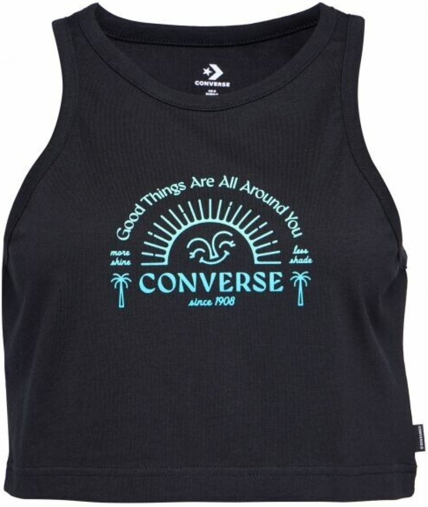 Dámské tílko Converse GOOD VIBES je jako dělané na léto. Můžete si ho vzít na zahradní párty nebo na festival. Užívejte si život naplno a stylově díky potisku s motivy slunce na přední straně.