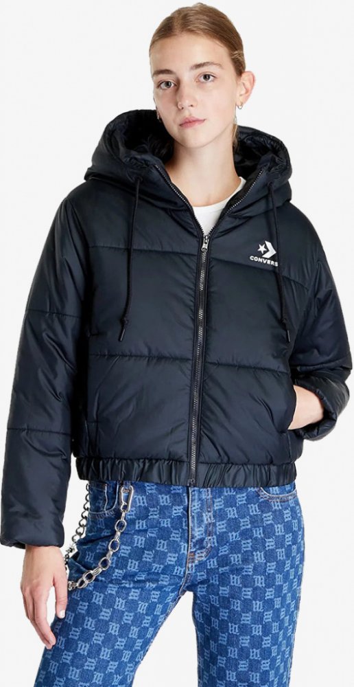 Černá dámská bunda s kapucí od značky Converse s decentním logem