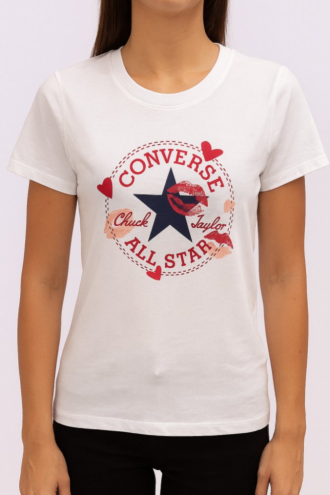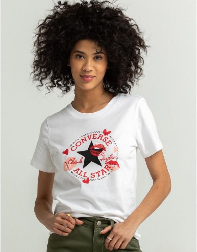 Dámské tričko Converse VALENTINE’S DAY CLASSIC TEE s nápaditými valentýnskými motivy a logem značky využiješ nejenom 14. února. Má klasický střih s krátkým rukávem a kulatým výstřihem, který se hodí ke všemu. Příjemný materiál je zárukou pohodlí.