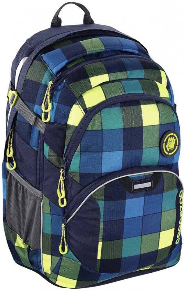 Zde se podívejte na video, které Vám tento kostkovaný batoh blíže představí (batoh na videu je stejný typ, pouze v jiném designu): Zeleno - modrý kostkovaný batoh do školy pro chlapce zhruba od 2. stupně s prostorem pro notebook, dokumenty a osobní věci. Má prodyšné polstrování zad z pěnového Air Mash materiálu pro optimální cirkulaci vzduchu, polstrované, nastavitelné ramenní popruhy s refelxními prvky ve tvaru S beze švů ( které neřežou do ramen, dobře a pevně sedí na zádech a snadno se s nimi manipuluje). Batoh je opatřen značkovými, velice kvalitními, voděodpudivými zipy YKK. Boční popruh je stahovací, praktický hrudní pás je nastavitelný, odnímatelný a má zarážku proti vyvléknutí, bederní popruh je taktéž odnímatelný. Batoh má poutko pro jeho snadné zavěšení a polstrovanou rukojeť. Jeho dno je pevné a polstrované. Batoh má celu řadu reflexních prvků na všech stranách pro větší bezpečnost Vašeho dítěte. Na přední straně batohu je umístěna reflexní páska pro připnutí blikačky. Celý batoh je velice šikovně členěný. Uvnitř batohu jsou dvě hlavní velké kapsy, kam se pohodlně vejde formát A4,polstrovaná kapsa pro 15.6" notebook. Přední kapsa je také prostorná, ideální např. na svačinový box. Také kapsa s organizérem na doklady, psací potřeby, karabinkou na klíče a různé drobnosti se bude jistě dobře hodit. Po bocích batohu jsou dvě boční kapsy, např. na láhev s pitím. Na zadní straně batohu je navíc jedna tajná kapsa. Hmotnost batohu je 1000g a celkový objem 30 litrů. Jeho vnější rozměry jsou: šířka 30cm, výška 45cm, hloubka batohu 20cm. Batoh je vyroben z polyesteru, neobsahuje PVC !