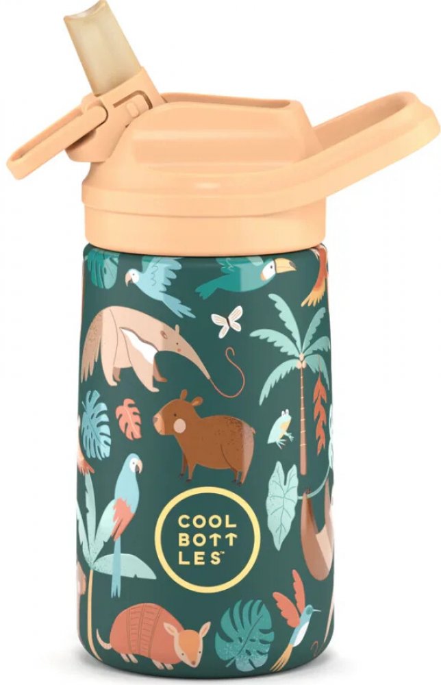 Nerezová termoláhev Cool Bottles KIDDIE RAINFOREST REFUGE 3D 350 ML byla navržena speciálně pro nejmenší děti od 12 měsíců, aby je provázela na každém kroku – ve školce, na hřišti, při cestování i hrách. Hlavní předností je silikonová hubička – pítko s technologií Biteflow, která umožňuje dětem pohodlné pití jemným skousnutím. Praktické klikací zavírání chrání hubičku před prachem a nečistotami, t...
