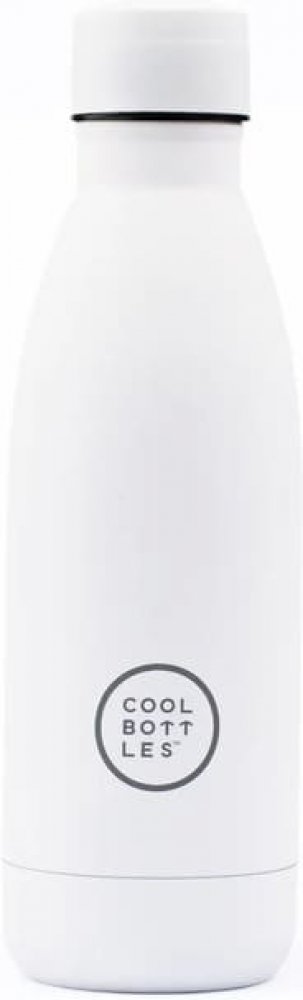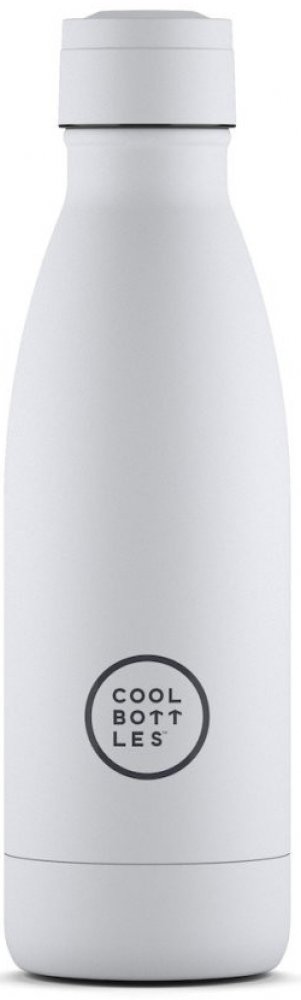 Unikátní nerezová třívrstvá termoláhev Cool Bottles Mono White se sametově hebkým povrchem a víčkem stejné barvy.