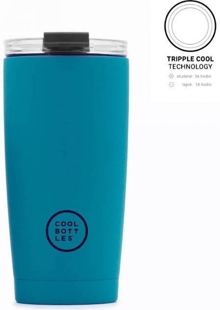 Přejete si, aby vaše káva či čaj zůstaly teplé i mimo váš domov? Cool Bottles Vivid Turquoise, třívrstvý, 550 ml vám toto přání pomůže splnit. Tělo hrnku je vyrobené z nerezu, tudíž není třeba se obávat mechanického poškození, zároveň zajistí udržení tepla na dlouhou dobu. Víčko vám zajistí, že můžete cestovat bez obav z vylití nápoje a přitom se postará o udržení teploty. Cool Bottles Vivid Turqu...