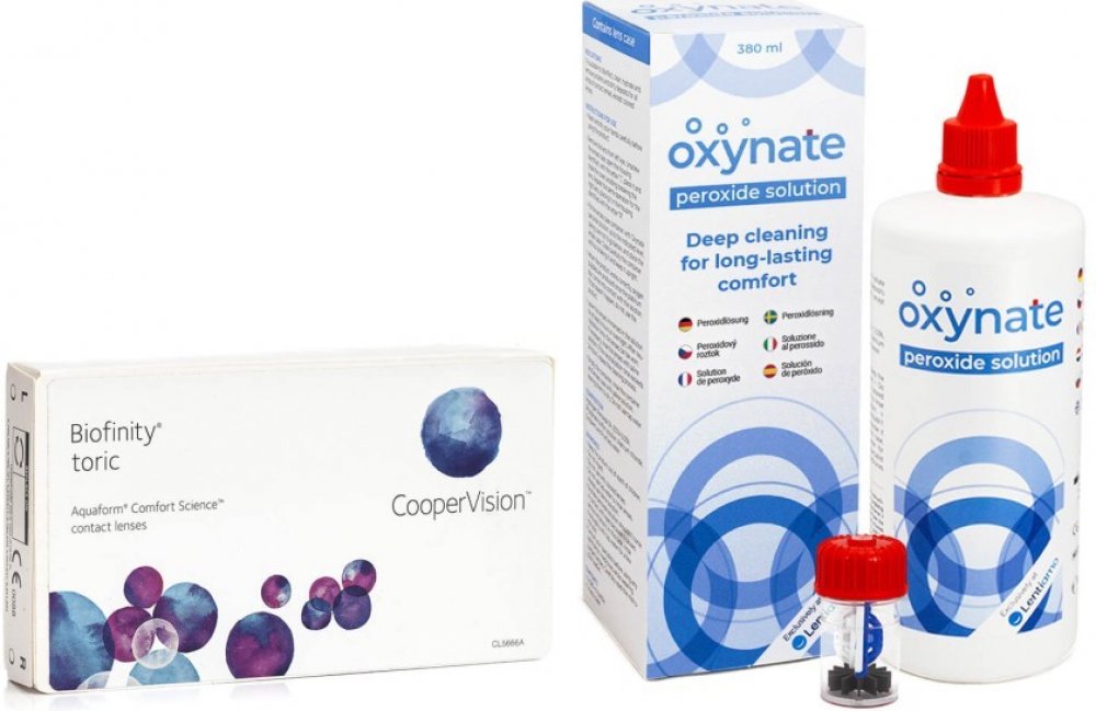Měsíční kontaktní čočky Biofinity Toric nabízíme ve zvýhodněném balíčku s peroxidovým roztokem Oxynate Peroxide 380 ml. Biofinity Toric jsou měsíční kontaktní čočky od společnosti CooperVision určené ke korekci astigmatismu. Svým nositelům kromě výhod silikon-hydrogelového materiálu nabízí i optimální design a využití unikátní technologie Aquaform, která udržuje čočky přirozeně vlhké a pohodlné. P...