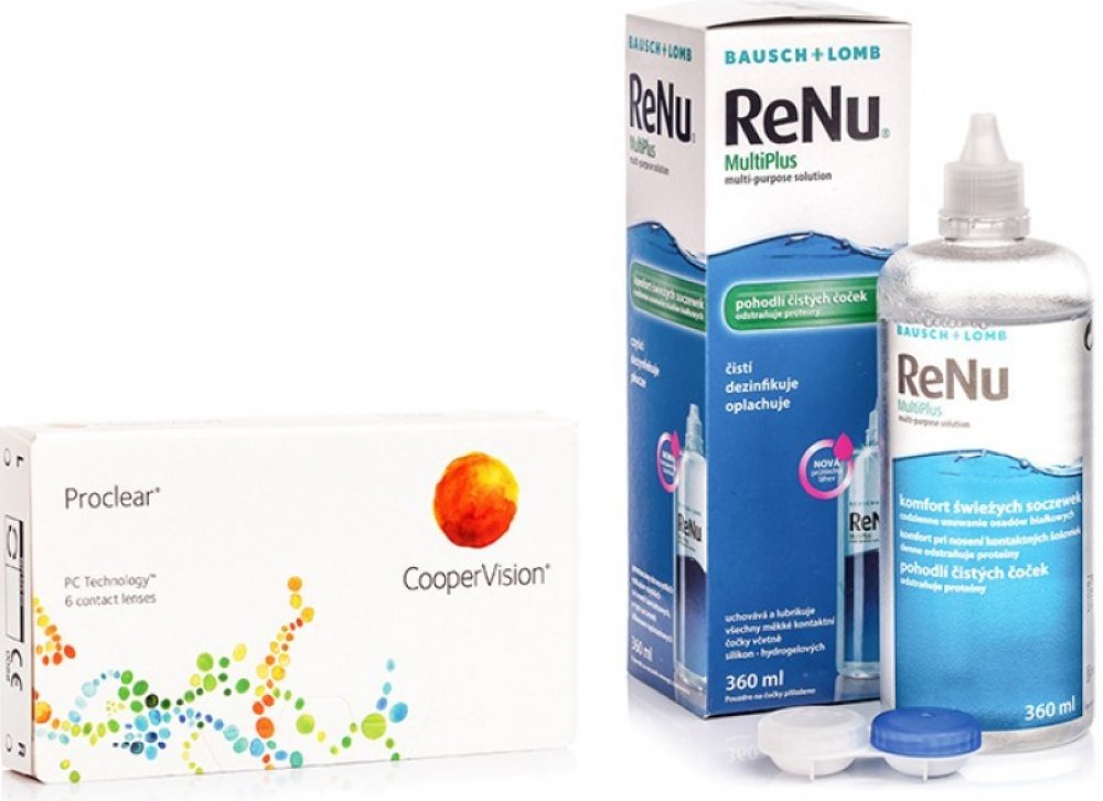 Měsíční kontaktní čočky Proclear Compatibles Sphere nabízíme ve zvýhodněném balíčku s roztokem ReNu MultiPlus 360 ml. Proclear Compatibles Sphere (6 čoček) jsou měkké měsíční kontaktní čočky pro denní nošení. Pro své specifické materiálové složení jsou velmi vhodné pro uživatele trpící syndromem suchého oka. Výborným způsobem dokáží udržovat vlhkost. Vysoký obsah vody i vysoká propustnost pro kyslík jsou další argumenty pro kontaktní čočku Proclear Compatibles Sphere. Výrobce omezil výrobu kontaktních čoček Proclear Compatibles Sphere a v současné chvíli negarantuje dodání neskladových variant. Z tohoto důvodu prodáváme kontaktní čočky Proclear Compatibles Sphere pouze v parametrech, které jsou aktuálně skladem. Varianty, které momentálně nejsou skladem, není možné objednat. Roztok ReNu MultiPlus 360 ml od společnosti Bausch & Lomb je víceúčelový roztok s Hydranátem, určený pro kompletní péči o všechny druhy měkkých kontaktních čoček. Tento víceúčelový roztok oplachuje, dezinfikuje a zároveň čočky hydratuje a odstraňuje usazené proteiny a lipidy obsažené v slzách. Ve složení tohoto roztoku je i kyselina boritá, která vyrovnává narušené pH na kontaktních čočkách. Látka Poloxamine odstraňuje vnější zbytky buněčných tkání.