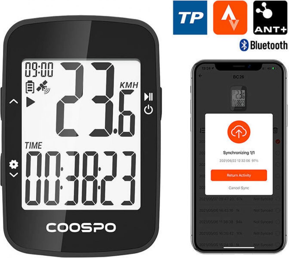 Přesné měření zajišťuje duální systém GPS + Beidou, který se po zapnutí automaticky připojuje a kalibruje čas. Připojení trvá jen několik sekund, a zařízení tak rychle připravíte k jízdě. Záznamy se ukládají do interní paměti s kapacitou až 8 MB, což odpovídá přibližně 80 hodinám aktivit. Data lze přenášet pomocí aplikace CoospoRide do telefonu, kde je možné provádět analýzy nebo je sdílet na Stravu. BC26 rovněž nabízí funkci „Speed Alert“ – po překročení zvoleného limitu rychlosti přístroj upozorní krátkým pípnutím, které lze podle potřeby vypnout.