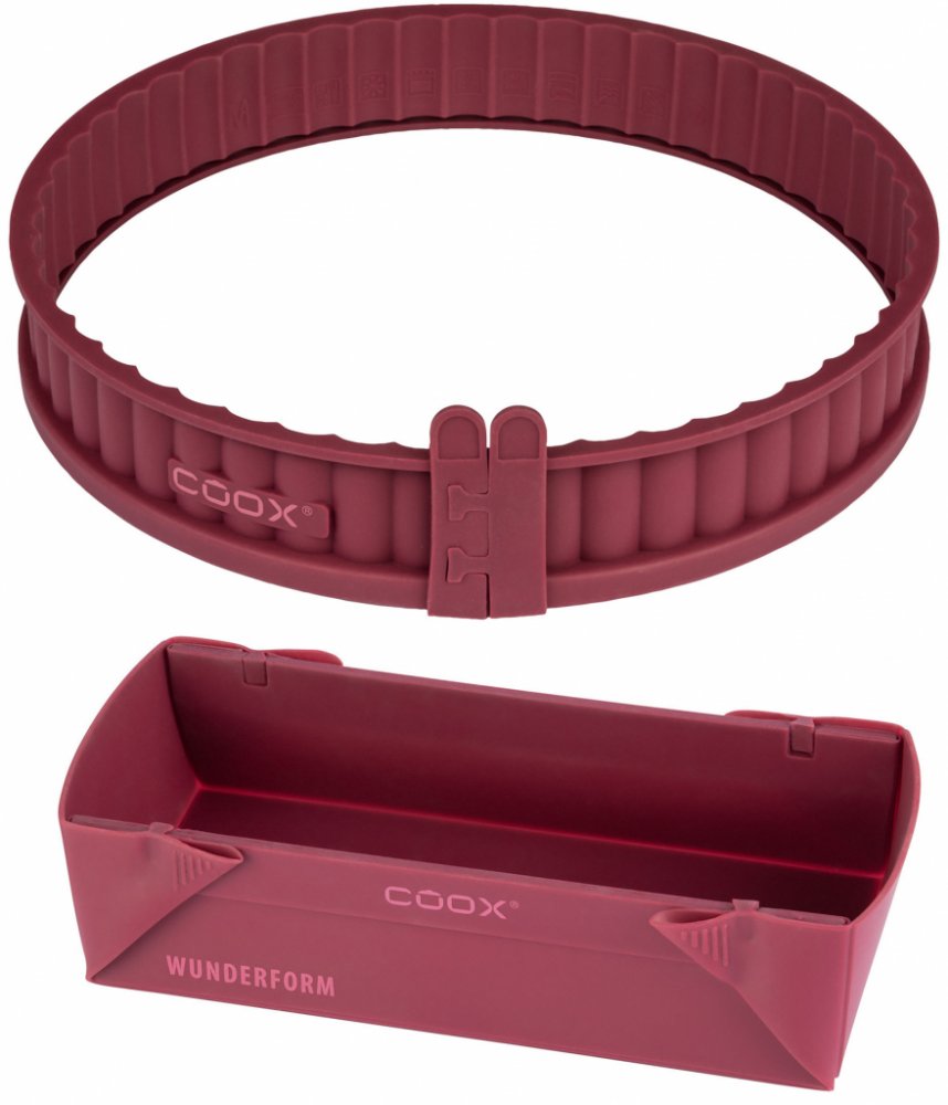 Coox Sada silikonové pečicí fromy M a formy na koláč; Ø 26 cm, červená Pečicí forma Skládací silikonová forma na pečení Jednoduše se rozloží; šetří místo Nepřilnavá; snadno se čistí a je vhodná pro mytí v myčce na nádobí Možnost zdobení přímo v pečicí formě Běžná velikost vhodná pro směsi na pečení Tepelná odolnost od -40 °C do 230 °C Objem: cca 1,5 l Forma na koláč Ideální na pečení slaných koláč...
