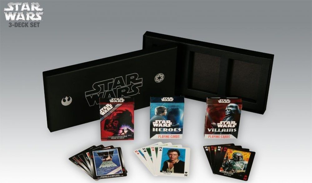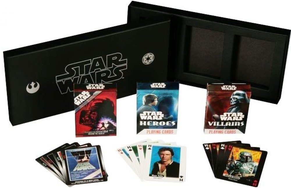 Jsou vhodné například jako dárek každému nadšenci serie Star Wars. Na kartách jsou plakáty z upoutávek k jednotlivým epizodám.